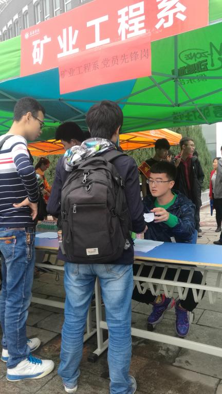 2017年9月16日,矿业工程系迎来了17级新生。今年,学生党支部书记马骉带领全体学生党员,通过设立“党员先锋岗”进行迎新活动,成为校园里的一道靓丽风景线。