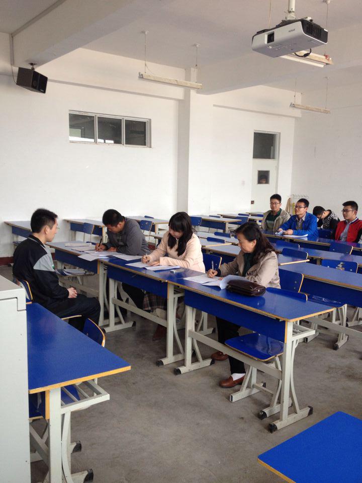 自4月份以来,教学主任贺全智、采矿教研室主任潘志东老师精心组织了复习;4月11日我系郭荣华、张盈盈老师与技能鉴定站的4位工作人员主持了技能鉴定工作,考试分笔试和面试两个环节,分别于上午8:00-12:00在2-C101组织笔试,10:00-12:00于3-A306、3-A307进行面试。经鉴定,除4人不及格外其他全部合格,合格率达到95%,4人经补考后由中级工降为初级工。