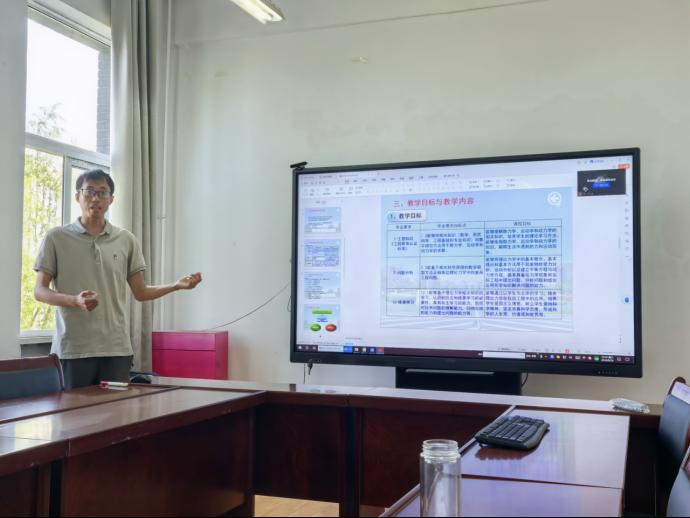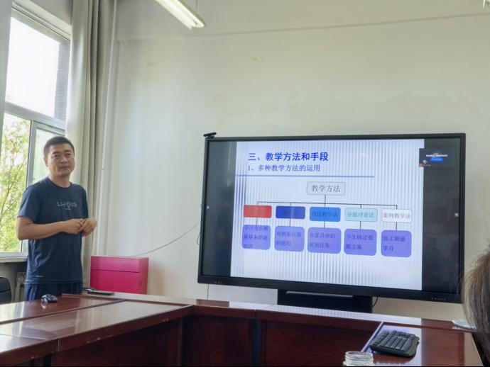 各位教师围绕OBE理念,结合人才培养方案的课程目标、毕业要求等方面,对所教课程进行清楚地阐述和展示,分别从“课程地位、教材、学生、课程思政、教学改革等方面,全方位、多层次的对各自所讲授的课程进行了详细的阐述。
