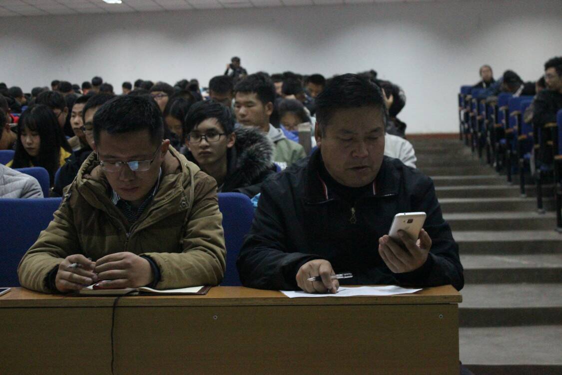 赵团生先生首先以自己的工作历程分析了防水治水在工作中的作用,为大家介绍了矿地防水治水的意义与作用,让大家明白了矿地生产与防水治水的重大关系。随后赵团生先生结合多媒体为同学们呈现了关于矿地生产防水治水与安全生产的具体实况,扩充了同学们在安全生产的知识同时赵团生讲师就关于测量与防水治水的工作联系做了详细报告,点出测绘测量与安全生产的重大联系最后赵团生先生同学们做了关于矿井隧道防水治水一些突发事故的防治措施,并列举了一些事故的实例,让同学们充分认识到了矿产生产安全的重要性。报告结束,同学们有序退场。