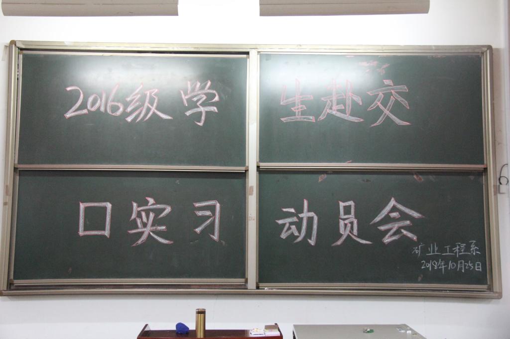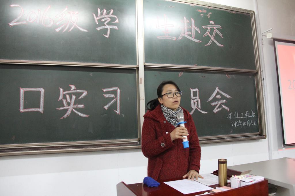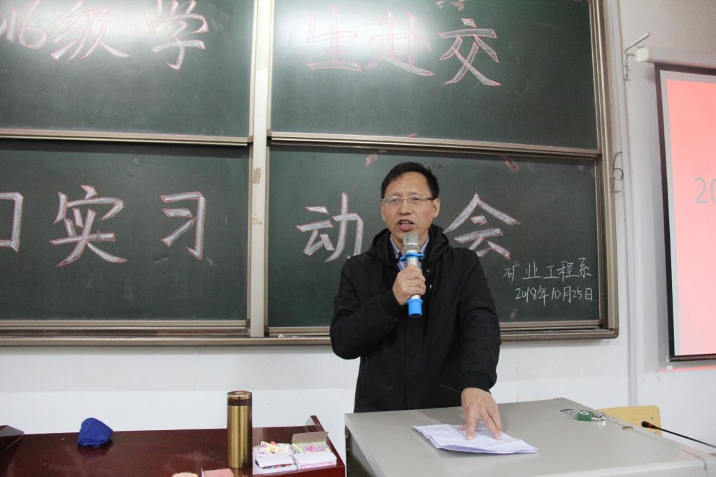 2018年10月25日上午10:30,矿业工程系2016级全体师生四百余人在2C-101开展了2016级学生实习动员会。出席本次会议的嘉宾有:矿业工程系特聘专家刘岩教授、矿业工程系党总支副书记薛淑萍老师、矿业工程系副主任贺全智老师、实习总负责人张开老师、采矿教研室主任潘志栋老师、机械教研室主任马利云老师、分管科研副主任白贵臻老师、班主任安新梅老师、刘鹏珍老师、李晋老师等。
