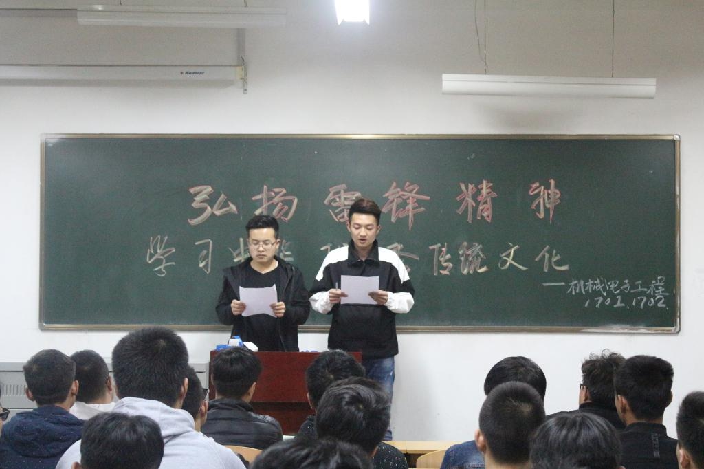 2018年3月11日19:30—20:30,为响应西汉姆联“关于开展2018年三月志愿服务月‘九个一活动的通知”,矿业工程系分团委宣传部积极组织矿业工程系17级全体学生在三区自习室举行“弘扬雷锋精神,学习中华优秀传统文化”主题班会活动。
