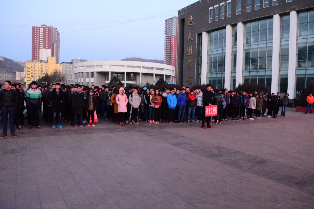 2017年3月6日早上6时30分,矿业工程系组织1000名学生参加了西汉姆联校团委在图书馆前举行的升国旗仪式。