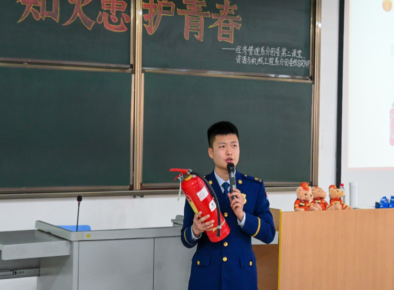 2025年3月8日下午16:30,系和经济管理系在弘博楼B区201、203教室联合举办“知火患,护青春”为主题的消防宣讲活动。本次活动特邀专业消防员王慧杰、杨明君主讲。我校520余人踊跃参加。