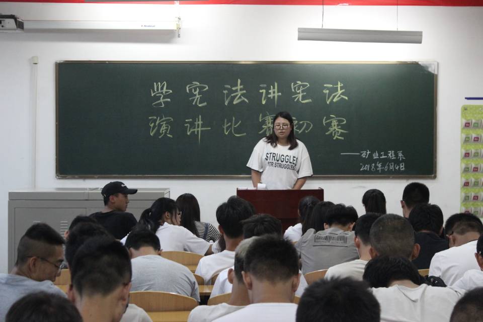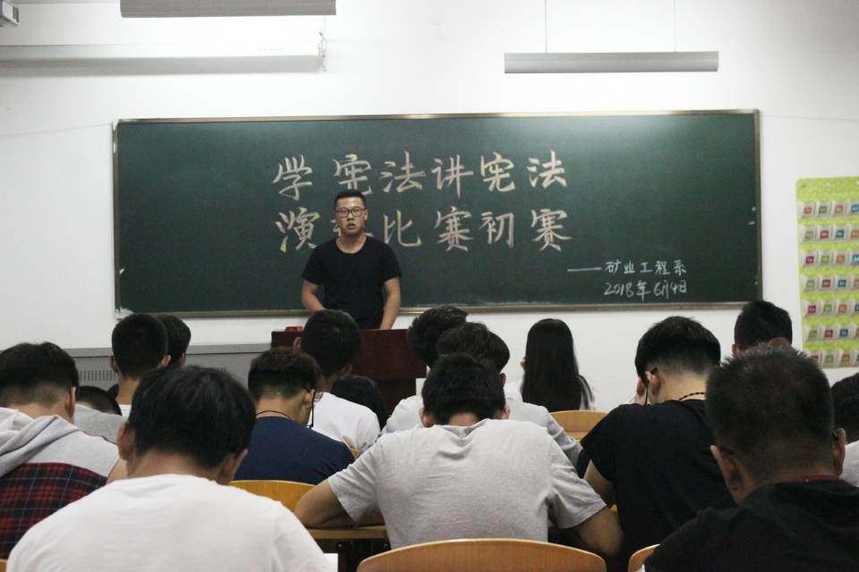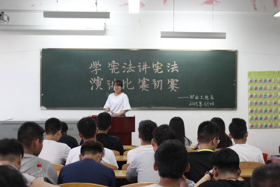 2018年6月4日19:30-21:00,矿业工程系组织学生于三区306、303 教室举行“学宪法,讲宪法”演讲比赛初赛。共有22名学生参与本次比赛。