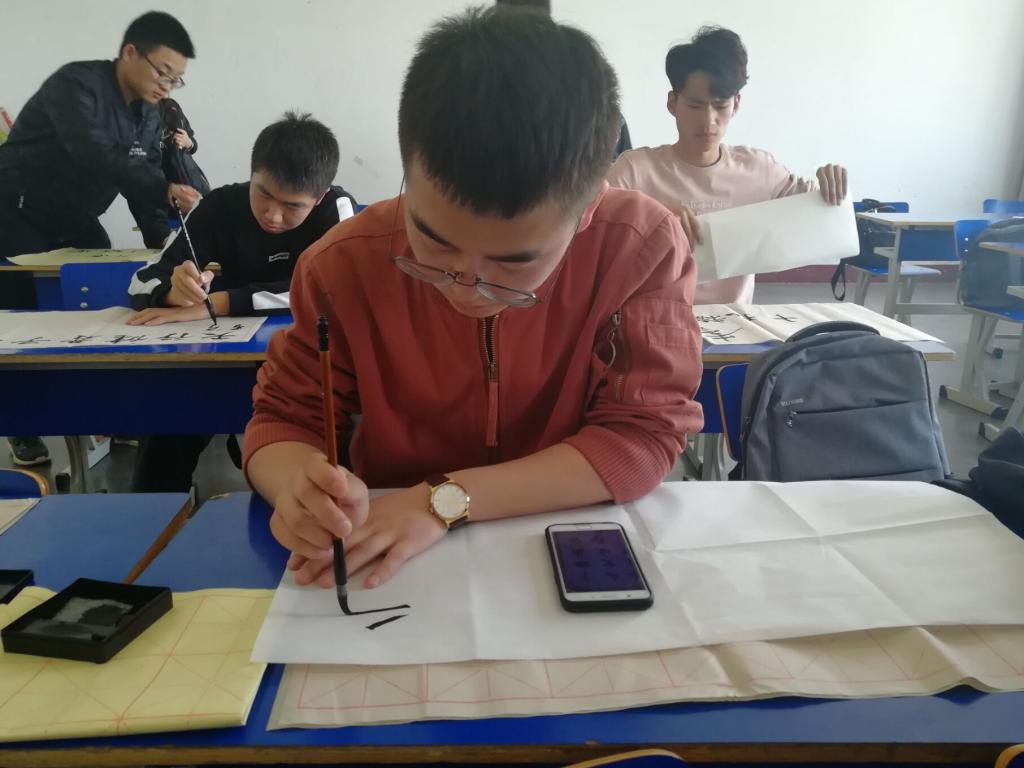 2018年4月18日中午,矿业工程系学生分会学习部组织本系学生于三区307开展以“弘扬传统文化,传承红色精神”为主题的现场毛笔书法大赛。
