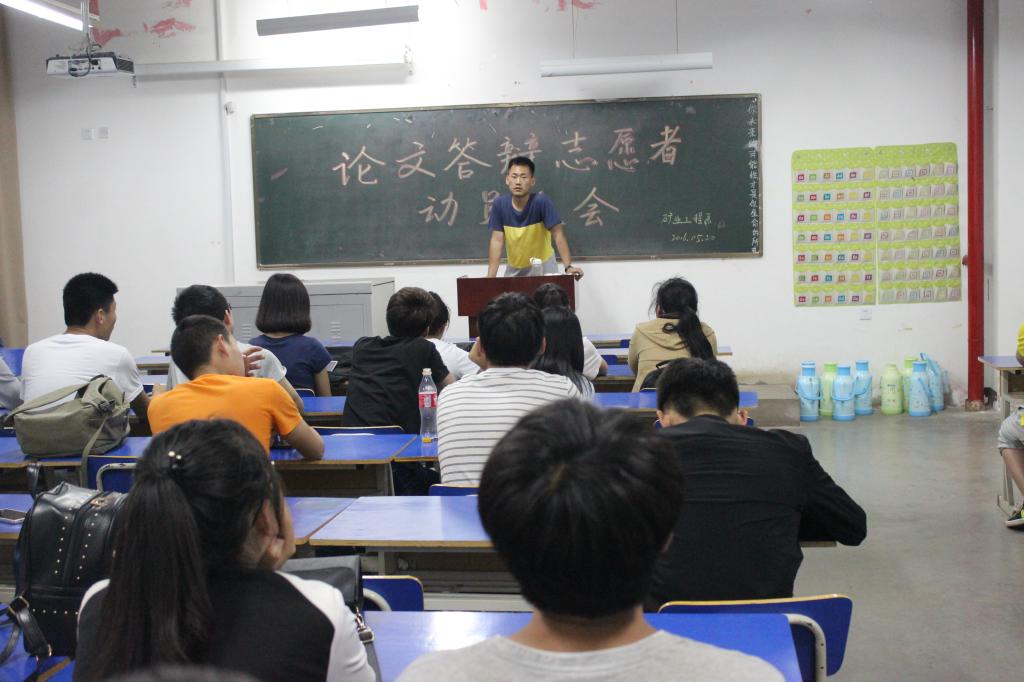 大会上,孟广勋为各志愿者分配好所负责的教室,并强调了志愿者们在服装、礼貌等方面需要格外注意,要展现出自己最好的一面,从而为大四学生的论文答辩工作做出最好的服务。