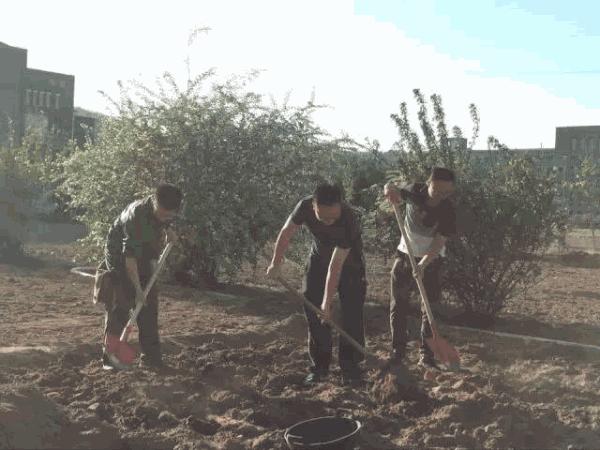矿业工程系分团委书记马骉老师乐在其中,开心劳动。
