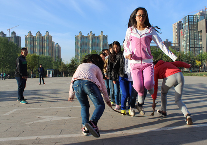 每天早晨6:30——7:30和晚上7:30——9:30,运动员们都会准时在图书馆前集合训练。游戏项目的选手在一遍又一遍的练习,一点一点的进步,田径运动员则是在进行体能训练,不断地提高自己的成绩。50人层层推进、10×50米播种收获,20×50米迎面接力等游戏项目,时刻都体现着我们的团队精神,负责各项目的学生分会干部,都积极地管理着自己的小团队。训练过程中,我们遇到的问题很多,在训练过程中,伤痛总是难免的,但是我们的选手依然活力四射,紧跟团队的步伐,不因为自己的伤痛影响训练的进行。