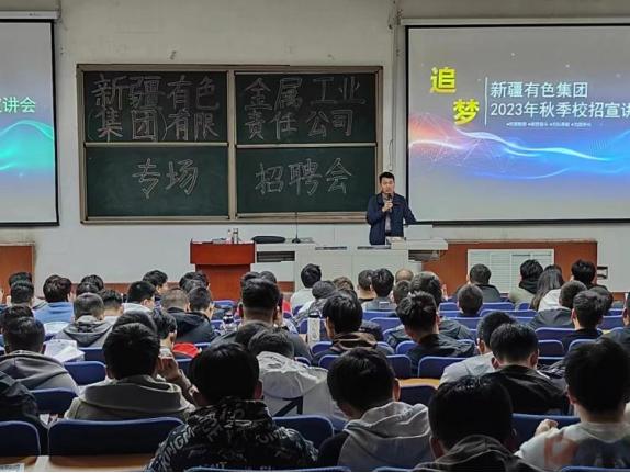 对接会上,宋宏志主任对王处长一行的到来表示热烈欢迎,并介绍我系毕业生实习就业的相关情况。王立建处长表示希望双方建立长期合作关系,建立稳定实习基地。双方希望通过校企合作方式,为大学生搭建实习就业平台,拓宽就业渠道,提高学生的实践能力,实现双方互利共赢。招聘会上,王立建处长讲到人才队伍对于企业发展至关重要,希望学生们能够加入新疆有色,建设大美新疆。学生们反响热烈,招聘会取得圆满成功。