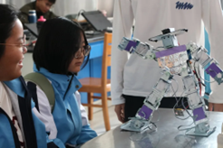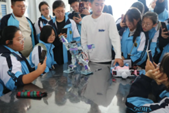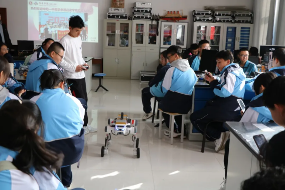 随后,便是本次研学活动最激动人心的环节——机器人功能展示。随着团队成员启动操作,机器人瞬间仿佛被赋予了生命。它们在同学们面前灵活地移动,展示出了令人惊叹的机动性。有的机器人能够通过手机操作进行移动和拍照,这种高度智能化的视觉识别能力,让在场的同学们发出阵阵惊叹。这些精彩的表演,不仅展示了机器人强大的功能,更让同学们感受到了科技的神奇与魅力。