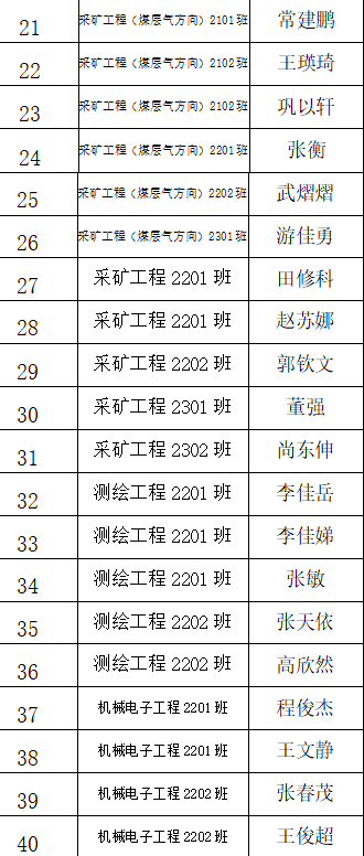 先进团支部:测绘工程2201团支部、采矿工程(煤层气方向)2202团支部