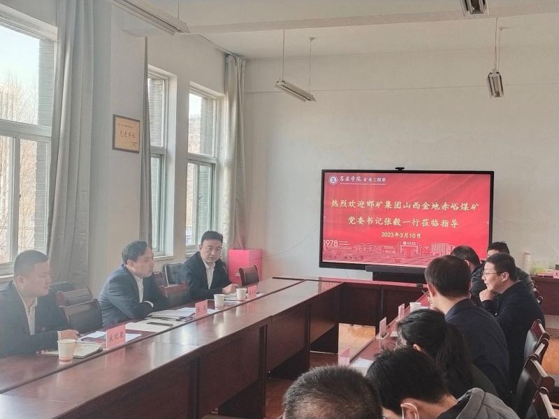 为全面推进党建和业务深度融合,加强校企产学研协同创新,形成合作共赢、共谋发展的良好局面,2023年3月10日上午,冀中能源邯矿集团山西金地赤峪煤矿党委书记张毅一行应邀莅临我校矿业工程系就实习就业、校企科研合作等事项进行洽谈。参加会议的有矿业工程系领导班子及中文系、物理系等相关领导,会议由矿业工程系党总支副书记李辉主持。