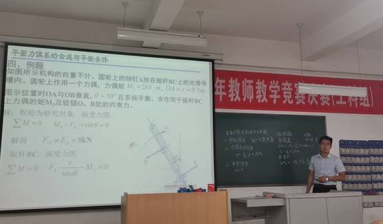 我系青年教师辛利伟以《工程力学》的节段内容进行讲授,在竞赛过程中语言流利,逻辑清楚,重难点突出,风格幽默,讲授较为突出。