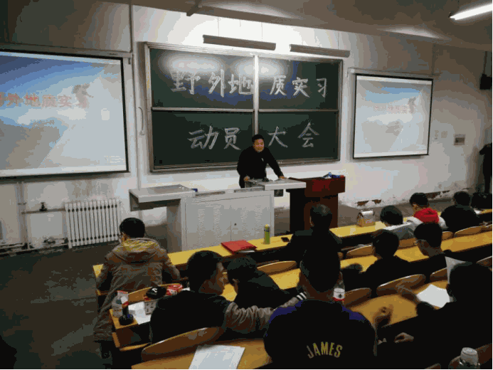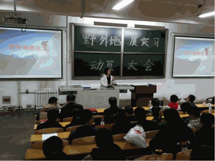 大会上,白贵臻主任首先对实习中一些需要注意的问题进行了强调。在思想上一定要认真对待,端正态度;在纪律上要求听从学校老师安排,注重实习过程;同时,对本次实习学生寄予厚望,希望“丰收归来,平安归来”。随后,由张香香老师为学生介绍本次野外地质实习的目的、地点、内容,以及实习报告的完成等具体实习事项。最后,刘丽做了总结性发言,动员大会圆满结束。