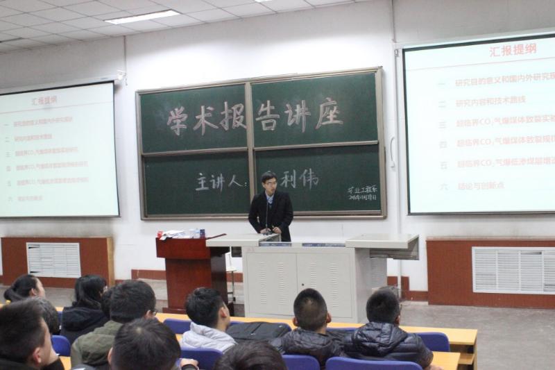 11月29日下午,我系辛利伟博士应邀在教学楼2C-201报告厅开展了题为“超临界二氧化碳气爆低渗透煤层致裂增透规律研究”的学术报告,此次报告会由我系科研副主任白贵臻老师主持,采矿工程与煤层气等相关专业本科生共计200余人聆听本次报告。