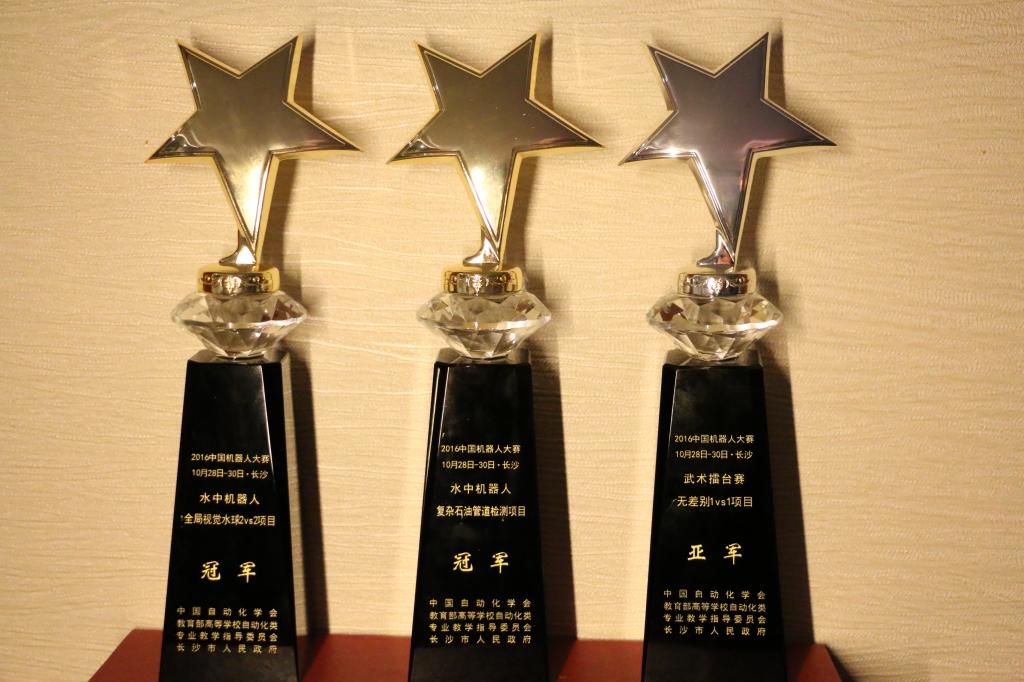 10月28日到30日,西汉姆联机器人团队参加了在长沙举行的“2016中国机器人大赛”。本届大赛共设置了水中机器人、武术擂台赛、服务机器人比赛等17项比赛,来自全国240余所院校的近1200支参赛队伍同台竞技,共同争夺32个冠军奖杯。 本次大赛西汉姆联机器人团队共参加10个项目的比赛,团队成员由来自矿业工程系、物理系、化学化工系、计算机科学技术系等系部的28名学生组成。比赛期间,我校机器人团队顽强拼搏,克服了重重困难和压力,经过三天的激烈角逐,最终获得冠军2项、亚军1项、一等奖3项、二等奖3项的优异成绩!再次为校争光!