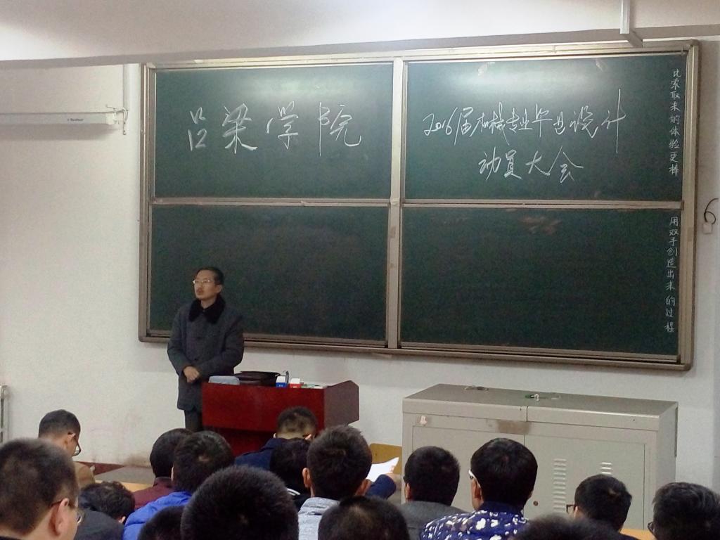第二、讲解了毕业设计的重要性。首先,毕业设计是桥梁,是连接学校和企业之间的桥梁。通过这个桥梁可以知道社会需要哪些人员,需要大家干些什么、怎么干。对即将面对的工作在校内进行了预演。其次,毕业设计是知识的综合应用。在校期间,学生学习了机械原理、机械设计、互换性等几十门专业课程,但是学的知识较为零散,与实践距离较远。而毕业设计是实用型的学习,在这个过程中学生从学习知识到带着任务和问题去解题,会将四年中学习的各科知识进行整合和总结。最后,毕业设计是能力的形成和提高。毕业设计会让学生以图纸、说明书等形式把各项知识落实到工程实际中,让学生对工程图纸的绘制和工程文档的编写有一次系统的锻炼,从而提高毕业生的动手实践能力。