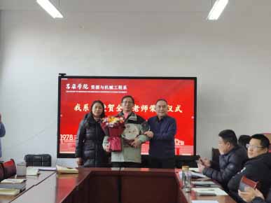活动中,系部领导向贺老师献上鲜花,并送上深深的祝福。