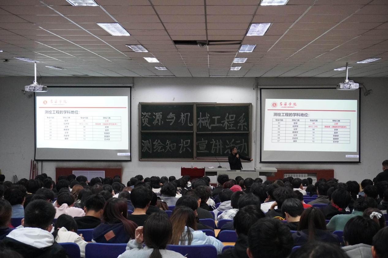 2025年11月6日晚上19:30,我系于弘毅楼2C-201教室成功举办了测绘知识宣讲活动。本次活动由我系高鹏伟老师主讲,我系共400余名同学积极参与。