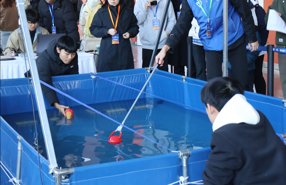 为迎接本次总决赛,在机器人教师团队的悉心指导下,各参赛队伍在有限的时间内争分夺秒、全力以赴,开展了系统而高效的备战工作。特别是在水中机器人赛(水球2V2)项目中,团队克服了设备老化等实际困难,不断优化机械结构,开展密集的协同训练,并多次模拟实战场景,锤炼实战能力。决赛过程中,面对复杂多变的环境与强劲对手,我校选手沉着冷静、配合默契,展现出顽强的拼搏精神,历经四轮激烈角逐,最终脱颖而出,勇夺桂冠。比赛期间,我校队员还积极与来自各省市的高校代表队交流学习,其专业素养与团队风貌赢得了广泛好评。