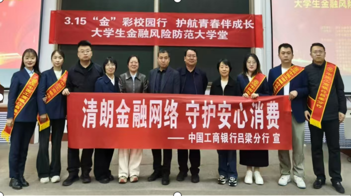 为提升同学们风险识别能力,增强依法维权意识,树立理性消费与正确投资观念,2026年3月12日下午14:30,我系在国家金融监督管理总局吕梁监管分局指导下,联合吕梁市银行保险业协会、工商银行吕梁分行等九家金融机构,于弘毅楼1C-201教室开展大学生金融风险防范大学堂。国家金融监督管理总局吕梁监管分局消保科科长邢建斌,工商银行客服经理曹转转,民生银行个金部经理孟艳娜,山西证券投教中心讲师李真宇,山西省青年相声演员刘乾、孙永刚,以及我系副主任郎君、专任教师张盈盈、刘丽出席活动,我系200余名同学参加。